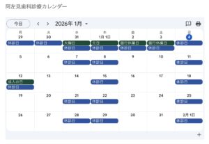 1月の診療予定のお知らせ